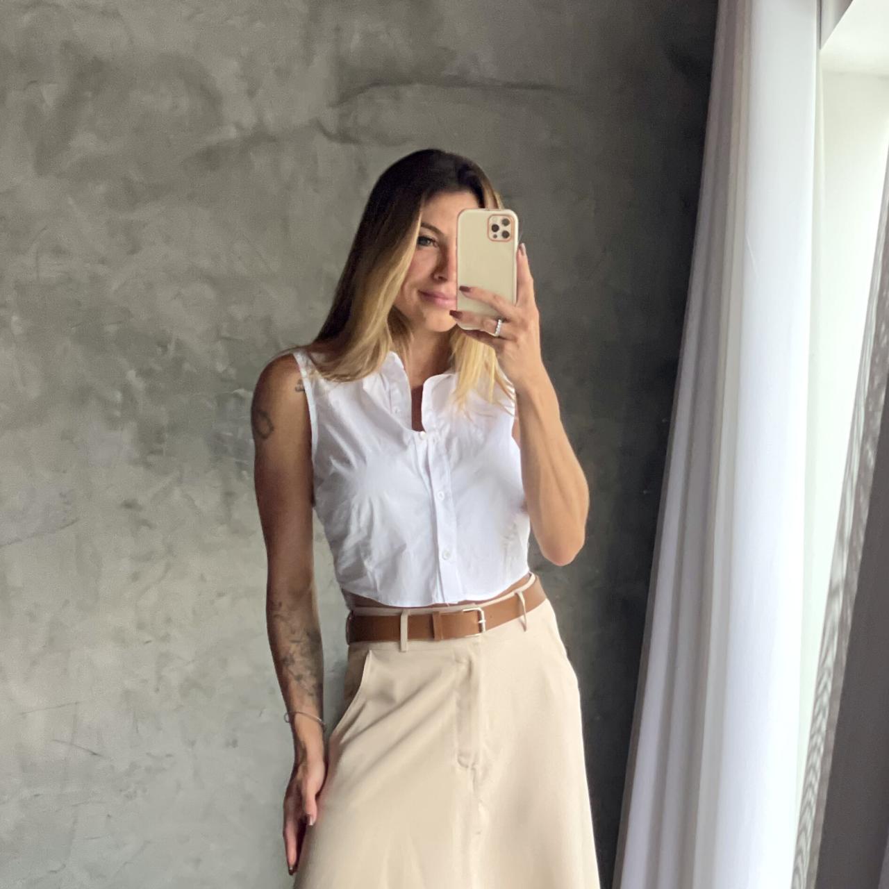 Camisa Cropped tipo regata. Tecido tricoline (algodão c/ elastano).
